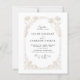 Un faire-part de mariage avec une calligraphie vintage et élégante inspirée des polices de caractères traditionnelles. Le design comprend une arche florale délicate dessinée à la main et inspirée de treillis de jardin avec des roses, des fleurs et des feuilles entrelacés. Minimaliste et élégant parfait pour mariage traditionnel et jardin.