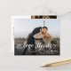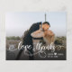 Budget Moderne Mariage Lettré "Amour et Merci" Calligraphie Script Photo Merci Cartes. Le modèle de carte de remerciements mariage moderne élégant avec une photo horizontale complète sur le devant avec le texte superposé "Amour et Merci" dans une police de script de typographie manuscrite tourbillonnant avec des swashes en blanc sur l'image. Ajoutez vos noms personnalisés et un message de remerciement. Si vous préférez écrire votre note à la main, supprimez simplement l'exemple de texte pour gagner de l'espace. Jolie et élégante cartes économiques à bas prix. Si vous avez besoin d'aide, veuillez contacter designer!