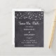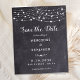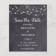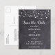 Réservez la date! Annoncez votre mariage à vos amis et à votre famille avec ces lampadaires rustiques et des lampes à cordes enregistrez les cartes de date. Personnalisez avec les noms, la date du mariage, l'emplacement. Ces cartes postales budgétaires doivent être postées en tant que cartes postales surdimensionnées, ce qui peut entraîner des frais d'affranchissement standard, mais elles n'ont pas besoin d'une enveloppe ou d'une étiquette d'adresse de retour. Ce mariage en ardoise unique sauvegarde les cartes fera une impression durable, vos invités s'assureront de sauver la date! DROIT D'AUTEUR © 2020 Judy Burrows, Black Dog Art - Tous droits réservés. Budget Chaîne Éclairage Mariage Enregistrer La Date Postcar