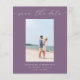 Ajoutez simplement votre photo et vous aurez un "Photo Save the Date" simple, minimaliste, chic et unique avec un fond violet lavande. Obtenez ce Save the Date en plusieurs couleurs. C'est idéal pour les mariages de printemps, les mariages d'été, les mariages sur la plage, les mariages bohèmes, les mariages d'automne, les mariages rustiques, les mariages d'hiver et plus encore. Économisez de l'argent avec cette version économique.