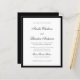 Élégant mais abordable, ce faire-part de mariage économique présente un design noir et blanc intemporel avec une typographie de script formelle. Parfait pour les mariages classiques ou à cravate noire, il comprend une formulation traditionnelle et une bordure élégante pour un look sophistiqué. Idéal pour les couples à la recherche de style sans sacrifier le budget.