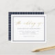 Vous pensez avoir un mariage sur le thème nautique ? Cette simple et élégante invitation est parfaite pour vous. Doté d'une double bordure en bleu marine contre un arrière - plan blanc propre. "Le mariage de" est affiché dans un faux script de calligraphie de feuille d'or. Vos informations de mariage apparaissent dans la typographie serif minimaliste. Revenir à un motif de contrôle par rapport à une couleur marine. Dans le cadre de la sélection du budget ici sur Zazzle, ces invitations viennent en tailles limitées et stocks papier. Si vous avez besoin d'un stock de format ou de papier différent, cette conception peut être transférée dans un format standard 5x7 à l'aide de l'outil de transfert de conception pour plus d'options.
