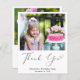 Carte de remerciements économique pour sa fête d'anniversaire avec sa photo et son "Merci" dans un élégant scénario contemporain avec un coeur gonflé. Personnalisez avec son prénom et la date de l'événement dans une simple typographie moderne. Au contraire, ajoutez une photo supplémentaire, son message de remerciement customisé et son nom dans un script signature.