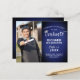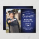 Un faire-part de graduation moderne et économique en bleu marine imprimé sur un papier lourd de 4,5 x 6,5 pouces au lieu d'un carton personnalisé avec la photo, le nom, l'année de classe et le nom et/ou le diplôme de votre diplômé (ou changer le texte à votre message personnalisé) avec le titre FÉLICITATIONS À NOTRE DIPLÔMÉ en typographie de trait de brosse à la main avec une fausse feuille métallique ou un accent en mortier contre un arrière - plan bleu marine brossé à deux tons. Idéal pour les budgets conservateurs et/ou l'exécution manuelle. ASSISTANCE : Pour obtenir de l'aide sur la modification ou la personnalisation de la conception, le changement de couleur ou le transfert de la conception à un autre produit, contactez le concepteur AVANT DE COMMANDER via l'onglet MESSAGE Conversation Zazzle ou envoyez un courriel à makeitaboutyoustore@gmail.com.