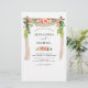 Budget Coral, Pêche et blanc Floral et Eucalyptus Arc vert Mariage Printemps ou Eté Mariage Invitations - comprend belle et élégante typographie script avec des fleurs botaniques modernes et la verdure pour la célébration spéciale de mariage.