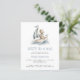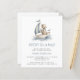 This cute baby shower invitation features a dusty blue and beige watercolor illustration of a teddy bear riding in a sailboat. The words "AHOY! It's a Boy!" and the name of the mom-to-be appear in dusty blue decorative font. Ideal for a nautical-themed boy's baby shower.