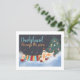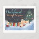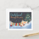 BUDGET Dachshund à travers la neige .. amusant thème des vacances carte de chien de Noël de Ricaso - avec un mignon dachshund portant un pull de Noël et un casquette bobble à côté d'un arbre de Noël, et sur un arrière - plan d'un ciel bleu foncé avec la neige tombant