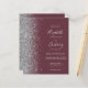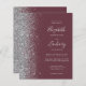 Le bord gauche de cette élégante faire-part de mariage moderne est orné d'une bordure en faux parties scintillant argenté. Le texte personnalisable combine écriture gris argenté pâle, copperplate et polices italiques sur un arrière - plan bordeaux foncé. L'envers présente un design bordeaux et argenté assorti.