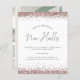 Budget Decking New Halls Rose Gold Parties scintillant Carte de Noël. Un prix économique 4.5" x 5.6" alternatif, dans un STOCK CARD SEMI-GLOSS 110 lb d'épaisseur similaire à une carte postale. Les enveloppes sont en option et légèrement plus grandes que la taille de la carte. New Halls est dans un script stylé. Personnalisez facilement votre message et vos noms et votre photo au dos.