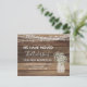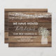 Budget Rustic Farmhouse Wood, String Light and Jar of Baby's Breath Flowers Nous avons Déménagé Nouvelle Maison ou Nouvelle Adresse Cartes - comprend belle et élégante typographie script avec floral moderne pour la célébration spéciale New Home ou New Address.