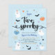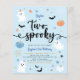 Budget deux bleu éffrayant Halloween joli garçon fantôme 2e anniversaire invitation fête. Design moderne sur le thème de l'Halloween pour une fête éffrayante ! Cette invitation d'anniversaire présente des toiles d'araignée, des fantômes, des citrouilles, des chauves-souris, des araignées, des feuilles, des cornes, des étoiles et des marguerites. Cet invitation est parfait pour les petits garçons !