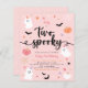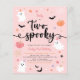 Budget deux éffrayant rose Halloween mignon fantôme 2ème anniversaire invitation fête. Design moderne sur le thème de l'Halloween pour une fête éffrayante ! Cette invitation d'anniversaire présente des toiles d'araignée, des fantômes, des citrouilles, des chauves-souris, des araignées, des feuilles, des cornes, des étoiles et des marguerites. Cet invitation est parfait pour les petites filles !