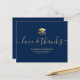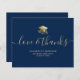 Envoyez une carte de remerciement de remise de diplôme personnalisée moderne à votre famille et à vos amis avec une illustration d'un chapeau de diplôme et d'un diplôme en or sur le devant avec un script moderne qui lit "Amour & Remerciements" en typographie or faux avec votre nom, école et classe/année en dessous sur un fond bleu marine. Le verso de la carte comporte un message que vous pouvez personnaliser ou supprimer. Conçu par l'artiste ©Susan Coffey.