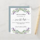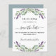 Un moderne et élégant Save the Date pour un mariage. Un arrière - plan blanc décoré de fleurs de lavande et de verdure d'eucalyptus. Personnalisez et ajoutez une date et vos noms. Le texte : Save the Date est écrit avec un grand script de style à la main tendance. Retour : arrière - plan vert