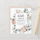 Budget Dusty rose Floral Roses et Eucalyptus Botanical Greenery Aquarelle Printemps ou été Baby Shower Invitations - comprend belle et élégante typographie script avec des fleurs botaniques modernes et la verdure pour la spéciale Mère à être la célébration d'un bébé garçon ou bébé fille nouvelle arrivée.