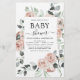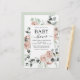 Budget Dusty rose Floral Roses et Eucalyptus Botanical Greenery Aquarelle Printemps ou été Baby Shower Invitations - comprend belle et élégante typographie script avec des fleurs botaniques modernes et la verdure pour la spéciale Mère à être la célébration d'un bébé garçon ou bébé fille nouvelle arrivée.