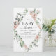 Budget Dusty rose Floral Roses et Eucalyptus Botanical Greenery Aquarelle Printemps ou été Baby Shower Invitations - comprend belle et élégante typographie script avec des fleurs botaniques modernes et la verdure pour la spéciale Mère à être la célébration d'un bébé garçon ou bébé fille nouvelle arrivée.