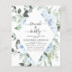Budget Dusty Blue Floral Roses et Eucalyptus Botanical Greenery Aquarelle Printemps ou Mariage d'été Brunch et Bubbly Champagne Bridal Shower Invitations - comprend une belle et élégante typographie script avec des fleurs tropicales modernes et la verdure pour la fête spéciale Mariée à être.