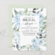 Budget Dusty Blue Floral Roses et Eucalyptus Botanical Greenery Aquarelle Printemps ou Mariage été Douche nuptiale Invitations - comprend belle et élégante typographie script avec des fleurs tropicales modernes et la verdure pour la célébration spéciale de mariage.