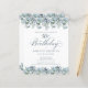 Des fleurs bleues et poussiéreuses créent des bordures haut et bas sur cette élégante invitation à l'anniversaire. La calligraphie de script classique apporte une touche de beauté. Cet article fait partie de la collection florale Dusty Blue.