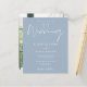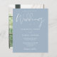 Cette élégante faire-part de mariage bleue poussiéreuse budget peut être personnalisée avec vos informations en typographie chic avec votre photo spéciale au verso. Conçu par Thisisnotme©