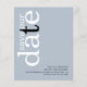 Un rapport qualité-prix BUDGET alternative sur une taille plus petite 4,5 x 5,6" semi-brillant poids 110lbs, qui est d'une épaisseur similaire à une carte postale (cependant ne convient pas à l'utilisation comme carte postale.) VEUILLEZ NOTER qu'il y a UN invitation par feuille. Budget Dusty Blue QR Code Texte Enregistrer La Date. Ajoutez votre code QR à votre site Web mariage au verso en remplaçant le code QR de l'exemple. Vous pouvez créer des codes QR gratuitement en ligne. Il suffit de chercher "créateur de code QR" et beaucoup d'options viennent créer gratuitement. Un design typographique moderne et élégant pour invitation votre famille et vos amis pour sauver votre date, avec Save Our Date en grande typographie tourné et à gauche côté en haut en blanc, avec une lettre noire "t" sur un arrière - plan de bleu pâle poussiéreux. Personnalisez facilement le reste du texte.