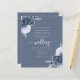 This elegant wedding invitation features dusty blue floral bouquets set off with silver faux foil greenery in two corners, on a dusty blue background. The customizable text combines silver gray serif, italic and handwriting fonts. The reverse side provides space for wedding details, along with a QR code guests can scan to visit your website and RSVP.