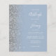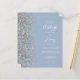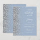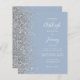 Le bord gauche de cette élégante faire-part de mariage moderne est orné d'une bordure en faux parties scintillant argenté. Le texte personnalisable combine écriture manuscrite blanche, copperplate et polices italiques sur un arrière - plan bleu poussiéreux. L'envers présente un design argenté et bleu poussiéreux assorti.
