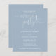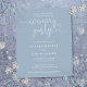 Cette élégante invitation à la soirée mariage à budget bleu poussiéreux peut être personnalisée avec vos détails de célébration mis en typographie chic. Conçu par Thisisnotme©