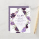 Budget Chic et moderne Dusty Purple Lilac Floral Fleurs Botanique Verdure Aquarelle Baby shower Cadre Automne, Hiver, Printemps ou Été Bébé Douche Invitations - comprend une belle et élégante typographie de script pour la Mère spéciale à être la fête ou la célébration.