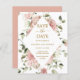 De très jolies roses roses roses poussiéreuses créent un cadre pour entourer votre enregistrement des détails de la date. Le texte Gold ajoute à la vibe glam.