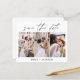 Budget Paysage moderne et élégant Horizontal Trois (3) Photo Enregistrer la date Magnet Mariage avec typographie manuscrite. L'aimant d'invitation de date inclut la typographie de script et le design chic et simple auquel vous pouvez ajouter votre photo de fiançailles customisée à.