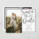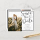 Célébrez votre prochain mariage avec cette carte moderne et élégante Save the Date, avec la calligraphie noire audacieuse "Save the Date" sur un arrière - plan blanc immaculé pour un look propre et sophistiqué. Ce modèle élégant offre de l'espace pour une photo préférée sur le devant et deux autres au verso, ce qui le rend parfait pour présenter votre histoire d'amour. Idéal pour les mariages minimalistes, classiques et contemporains. Entièrement personnalisable avec vos noms, date du mariage et emplacement pour créer un faire-part personnalisé et mémorable.