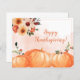 Envoyez des voeux de vacances chaleureux avec cette carte d'action de grâces florale élégante. Doté de citrouilles d'aquarelle et de fleurs d'automne dans des tons rustiques doux, ce design est parfait pour envoyer des salutations de vacances à vos clients. Personnalisez facilement le texte en quelques clics.