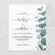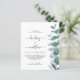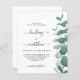 Famille d'Invitations et amis à votre fête mariage avec cet élégant faire-part de mariage à budget. Il est décoré de sprigs d'eucalyptus aquarelle dans les tons verts. Customisez cette invitation avec vos noms et détails. Utilisez l'outil de conception pour modifier la taille, le style ou la couleur du texte. Parce que nous créons notre oeuvre, vous ne trouverez pas cette image exacte d'autres designers. Aquarelle originale © Michele Davies.