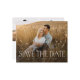 Un budget Élégant Typographie Photo Wedding Enregistrer la Date avec photo de fond, type moderne et simple disposition sur le devant. Le dos contient 2 photos supplémentaires et plus de détails. Cliquez sur le bouton Modifier pour customiser cette conception.