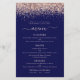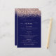 Budget Elegant Rose Gold Parties scintillant Script Marine Blue Mariage Menu. Un prix économique de 5,5" x 8,5", sur un élégant stock LINEN de 110 lb - pour une sensation de luxe à un bon rapport qualité-prix, il est parfait pour les menus, ainsi que des invitations et des programmes, etc. Cette alternative de taille budgétaire est également disponible dans d'autres choix de papier. Le stock de carte SEMI-GLOSS 110 lb est à peu près de la même épaisseur qu'une carte postale, donc fonctionne bien aussi pour les invitations. Le papier FELT 100 lbs est de couleur bouffante, PAS blanc, donc ajoute une touche rustique. Le stock de papier MATTE 80lbs est blanc vif, pour une impression nette, idéal pour vos menus et programmes, tandis que le papier SATIN 80lbs est mince et léger, idéal pour les enceintes. Un script élégant avec des swashes pour l'en-tête Menu et une fausse bordure de parties scintillant en or rose en haut sur les deux côtés. Personnalisez facilement le reste du texte à vos propres détails qui inclut des alternatives pour vos options végétaliennes ou végétariennes.