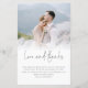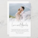 VEUILLEZ NOTER qu'il y a UN invitation par feuille. Budget Photo QR Code Script Faire-part de mariage. Une taille PLUS GRANDE de 5,5 po x 8,5 po à un prix abordable. VEUILLEZ NOTER QUE LES ENVELOPPES OPTIONNELLES SONT UN PEU PLUS GRANDES EN TAILLE À 6,75" x 9" env. Élégant budget Script Photo Mariage Love Thanks. L'amour et les remerciements sont dans un style manuscrit. Personnalisez facilement le reste du texte à vos propres détails et remplacez l'exemple de photo à l'avant par le vôtre.