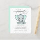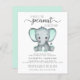 Un baby shower sexy, mignon et abordable, sans distinction de genre, par invitation postale avec "A Sweet Little Peanut Is On Her Way" (vous pouvez changer à "son" ou "Son") écrit dans un mélange de typographie moderne gris doux et de script élégant, et une aquarelle verte à la menthe pastel d'un éléphant bébé. Personnalisez le nom et la douche de la mère par mail en utilisant une simple typographie grise.