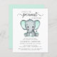 Une invitation à la douche à l'arrosage pour bébé, mignonne et économique, sans distinction de genre, avec "A Sweet Little Peanut Is On Her Way" (changez de "son" ou "Son" si vous le souhaitez), écrite dans un mélange de typographie gris doux et d'écriture stylée, et une aquarelle verte à la menthe pastel d'un éléphant bébé. Personnalisez le nom de la mère et les détails de la douche dans une simple typographie grise.