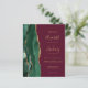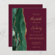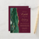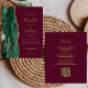 Le bord gauche de cette élégante faire-part de mariage moderne est orné d'une bordure en aquarelle vert émeraude, recouverte d'une parties scintillant en faux or. Le texte personnalisable associe écriture manuscrite dorée, copperplate et polices italiques sur un arrière - plan rouge bordeaux. L'envers offre de l'espace pour les détails du mariage, ainsi qu'un code QR que les clients peuvent scanner pour visiter votre site Web et RSVP, ce qui permet d'économiser le coût d'impression et d'envoi de cartes RSVP séparées.