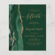 The left-hand edge of this elegant modern 50th anniversary party invitation features an emerald green watercolor agate border trimmed with faux gold glitter. The customizable text combines gold-colored handwriting, copperplate and italic fonts on a green background. The reverse side features a matching green and gold agate design.