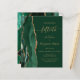 The left-hand edge of this elegant modern 50th anniversary party invitation features an emerald green watercolor agate border trimmed with faux gold glitter. The customizable text combines gold-colored handwriting, copperplate and italic fonts on a green background. The reverse side features a matching green and gold agate design.