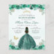 Emerald Green Floral Princess Tiara Quinceañera Invitation