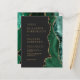 Le bord droit de cette élégante faire-part de mariage moderne est orné d'une bordure en aquarelle vert émeraude, bordée d'une parties scintillant en faux or. Le texte personnalisable combine des polices serif, cuivre et italique de couleur or sur un arrière - plan noir en ardoise. L'envers est assorti d'une agate vert émeraude et or.