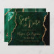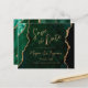 Ce mariage élégant sauvegarder la carte date dispose d'une image arrière - plan d'aquarelle vert émeraude parée de parties scintillant en faux or. Le texte personnalisable combine écriture manuscrite moderne couleur or, cuivre et polices italiques. L'envers présente un design coordonné vert émeraude et or agate.