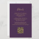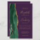 Le bord gauche de cette élégante faire-part de mariage moderne est orné d'une bordure en aquarelle vert émeraude, recouverte d'une parties scintillant en faux or. Le texte personnalisable combine écriture manuscrite couleur or, cuivre et polices italiques sur un arrière - plan violet. Ajoutez des détails supplémentaires au verso, ainsi qu'un code QR pour aider vos invités à visiter votre site Web mariage.