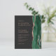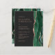 Le bord droit de cette élégante faire-part de mariage moderne est orné d'une bordure en aquarelle vert émeraude bordée d'une parties scintillant en or rose. Le texte personnalisable combine des polices de serif rose rose poussiéreuses, des polices de cuivre et d'italique sur un arrière - plan noir d'ardoise. L'envers est assorti d'une agate d'or vert émeraude et rose.