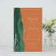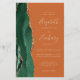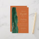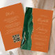 Le bord gauche de cette élégante faire-part de mariage moderne est orné d'une bordure en aquarelle vert émeraude, recouverte d'une parties scintillant en faux or. Le texte personnalisable combine écriture manuscrite dorée, cuivre et polices italiques sur un arrière - plan orange brûlé ou rouille. Ajoutez des détails supplémentaires au verso, ainsi qu'un code QR pour aider vos invités à visiter votre site Web mariage.