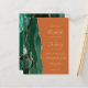 Le bord gauche de cette élégante faire-part de mariage moderne est orné d'une bordure en aquarelle vert émeraude, recouverte d'une parties scintillant en faux or. Le texte personnalisable combine écriture manuscrite dorée, cuivre et polices italiques sur un arrière - plan orange brûlé ou rouille. L'envers est assorti d'une agate vert émeraude et or.